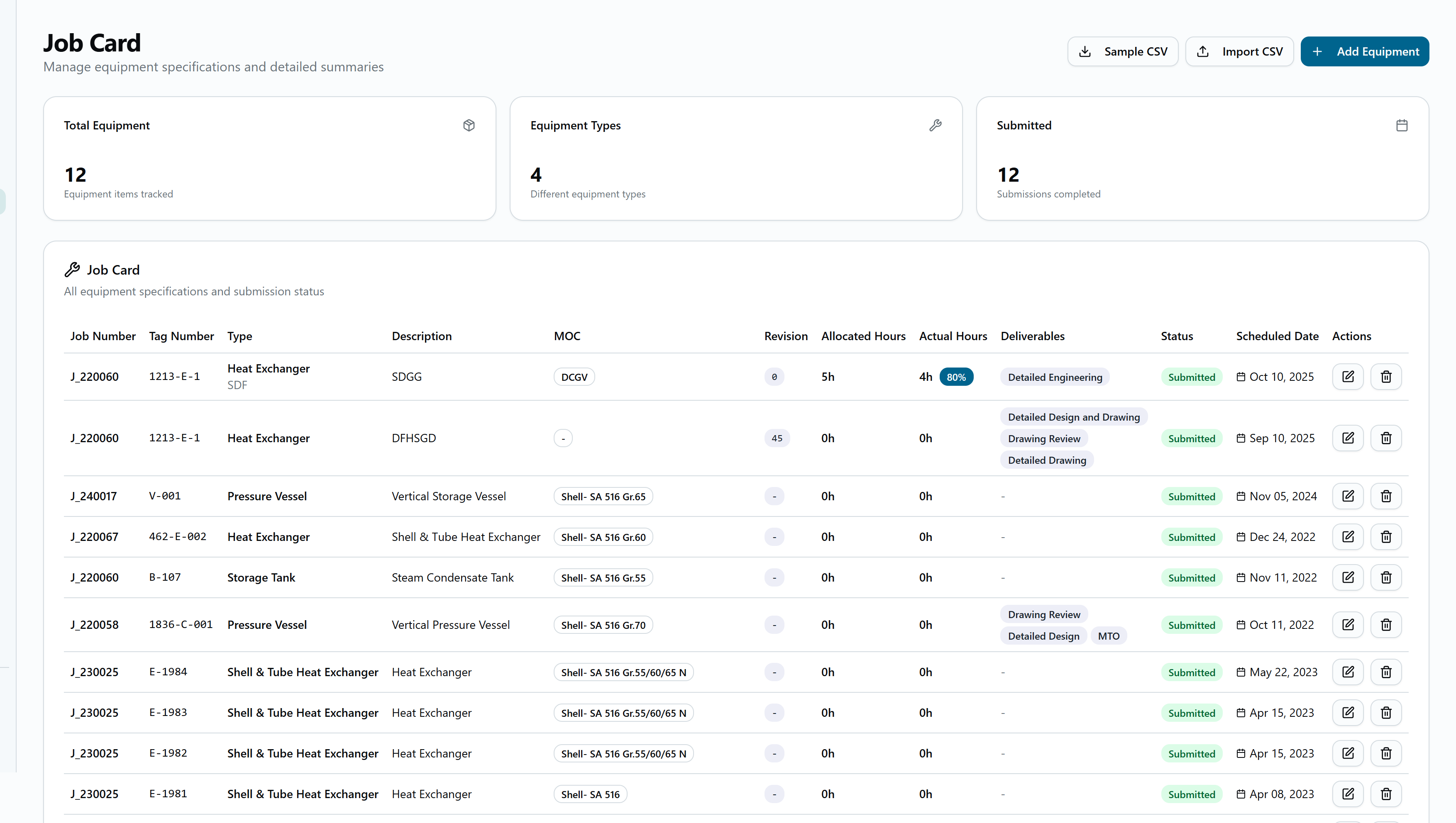 1. A comprehensive operations management platform — Built with React and Node.js, designed specifically for EPC-MEP workflows and project coordination.